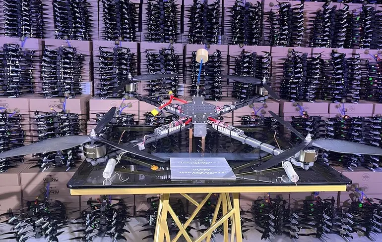 Один із найбільших українських виробників FPV-дронів Vyriy Drone презентував першу серійну партію із тисячі безпілотників, майже повністю зібраних із локалізованих комплектуючих. Дрони, оснащені тепловізійними камерами, виготовлені на замовлення проєкту "Армія дронів", а вартість одного БПЛА становить близько 30 тисяч гривень.