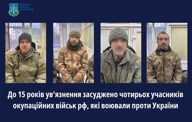 Суд в Україні засудив до 15 років ув’язнення чотирьох чоловіків, які воювали на боці російської армії, будучи громадянами України, повідомив Офіс генерального прокурора України.