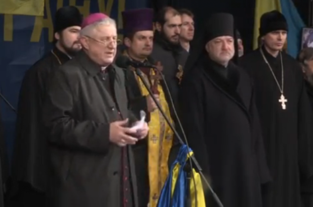 Віче на Майдані Незалежності традиційно розпочалося службою і молитвою.