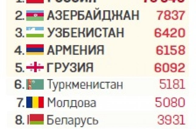 Менш ніж за рік число іноземців, які офіційно стоять на обліку в Україні, зросло в 1,5 рази (105 тисяч у 2012-му проти 162 тисяч в цьому році). У ТОП-15 найбільш активних "країн-іммігрантів" - республіки Середньої Азії і держави-мільярдники.