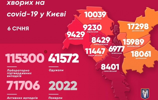 За весь час пандемії в столиці підтвердили 115 300 випадків захворювання COVID-19, померли від коронавірусу 2 022 киян, одужали 41 572 жителя Києва.