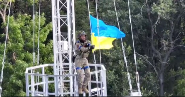 Президент Володимир Зеленський також опублікував відео як над смт наш захисник підіймає український прапор.