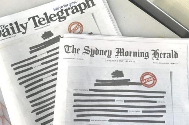Найбільші медіакорпорації Австралії The News Corp Australia і Nine об'єдналися в протесті проти обмеження свобод преси через закону про нацбезпеку. Видання корпорацій, серед яких The Australian, The Daily Telegraph і The Sydney Morning Herald, вийшли з замальованою чорним текстом на першій смузі та штампом "цілком таємно", пише BBC.