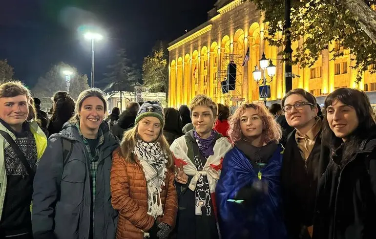 Шведська кліматична активістка Ґрета Тунберг приєдналася до мирної акції протесту проти результатів виборів до парламенту Грузії у Тбілісі в понеділок, пише Politico.