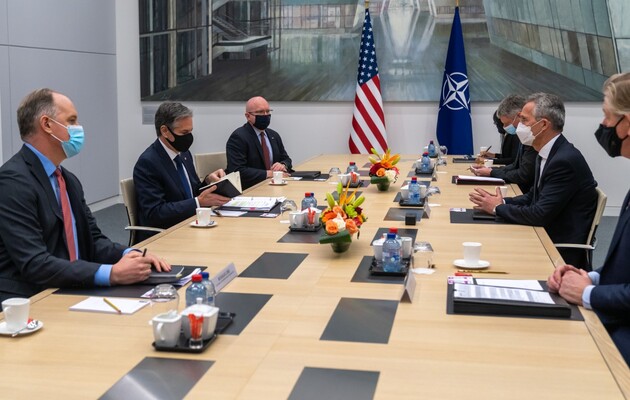 Державний секретар США Ентоні Блінкен та генеральний секретар НАТО Єнс Столтенберг на переговорах в Брюсселі в середу говорили про необхідність того, щоб Росія поклала кінець нарощування військ біля кордонів України, йдеться в повідомленні Держдепу.