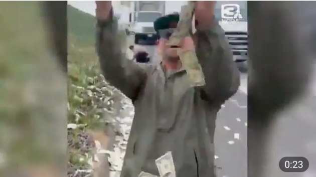 Люди, які побачили це першими, не розгубилися й почали збирати купюри. Для цього вони навіть перекрили шосе. Проте поліція попередила, що за привласнення грошей буде кримінальна відповідальність.