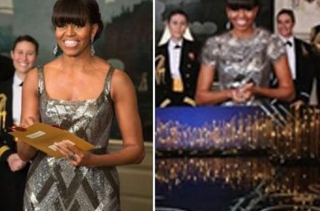До срібної сукні першої леді США домалювали рукави, а місце декольте теж підправили на набагато скромніший виріз.