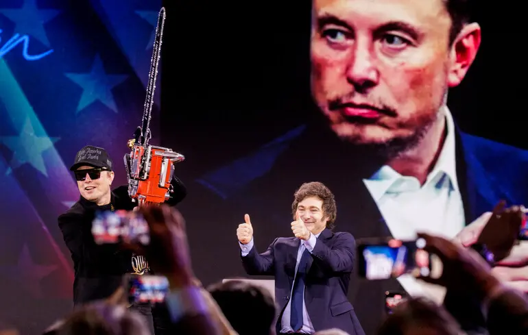 Днями Ілон Маск одержав у подарунок від ультраправого президента Аргентини Хав’єра Мілея бензопилку. Це відбулося на Конференції консервативних політичних дій. Під гуркіт музики й ревіння захопленого залу Ілон Маск стрибав по сцені, розмахуючи подарунком і вигукуючи: «Ця пилка — для американської бюрократії!».