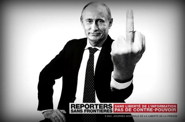 У рамках Всесвітнього дня свободи друку в Парижі члени міжнародної організації "Репортери без кордонів" розклеїли плакати, на яких зображені деякі глави держав, які, на думку "репортерів", входять у список "ворогів свободи преси".