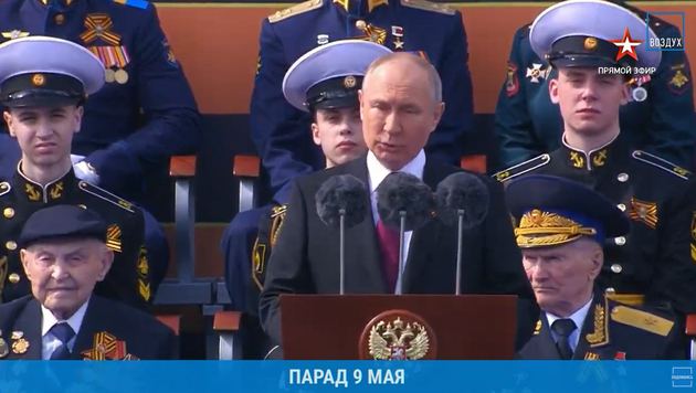 Президент Росії Владімір Путін на параді в Москві у вівторок, 9 травня,  заявив, що проти його країни ведеться «справжня війна», додавши, що він «хоче мирного майбутнього» у світі.