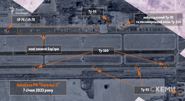Після грудневих ударів по аеродрому стратегічної авіації «Енгельс-2», розташованому в Саратовській області РФ, російська армія приблизно втричі зменшила число боєздатних бомбардувальників на його території. Це з'ясували журналісти програми «Схеми», проаналізувавши супутникові знімки Planet Labs від 7 січня, які отримали у своє розпорядження.