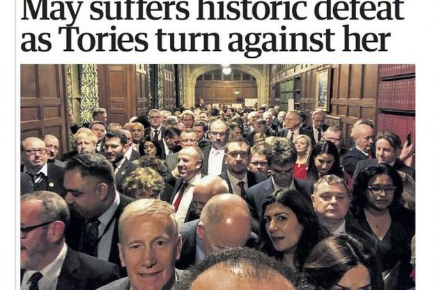 Депутати відхилили проект Brexit. Проти виступили 432 парламентарія, проголосували "за" лише 202 депутати. Газети відреагували на значну поразку уряду.