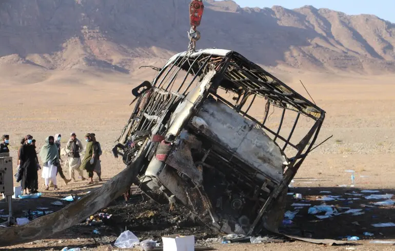 Автобус, що прямував у Кабул, спалахнув у вівторок увечері після зіткнення з вантажівкою та мотоциклом у провінції Герат – загинули усі пасажири, а також двоє людей з інших транспортних засобів.