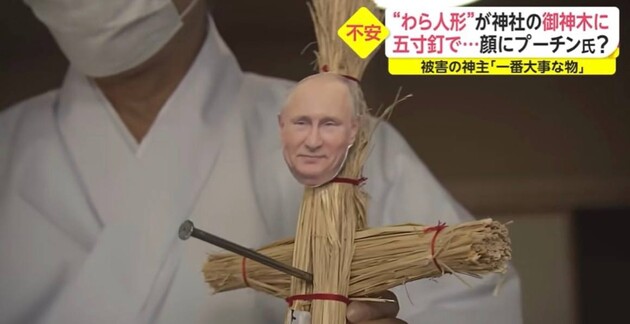 З травня місяця в Японії, на території синтоїстських храмів неподалік Токіо, знаходять прибиті до дерева солом'яні ляльки із прикріпленим фото Володимира Путіна. Це означає, що хтось намагається наслати на президента Росії стародавнє прокляття. Про це повідомляє Japan Today.