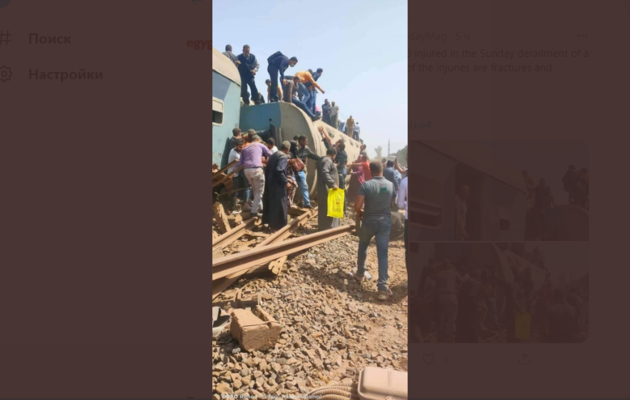 Чотири вагони поїзда зійшли з рейок в місті Бенха в провінції Кальюбія, недалеко від Каїра. Про це заявили в ж/д управлінні регіону. На відео, яке виклали очевидці в соцмережах відображені перевернуті вагони і пасажири, котрі втікають втечею по залізниці. Поїзд прямував в місто Мансура в дельті Нілу з єгипетської столиці, йдеться в повідомленні.