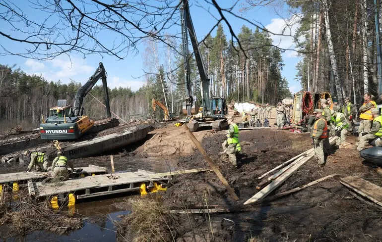 Підрозділи литовської армії разом із американськими військовими використали важку техніку, включно з екскаваторами та підводними дронами, щоб витягнути броньовану ремонтно-евакуаційну машину M88 Hercules із мулу на дні водойми.