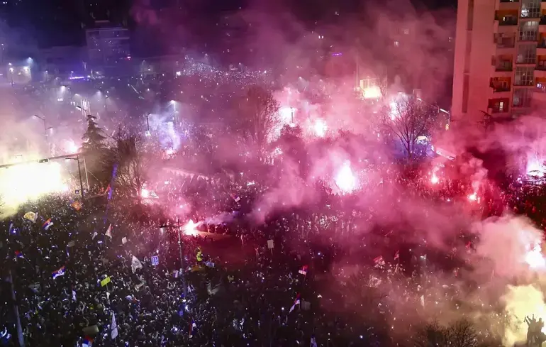 Протести в Сербії, які починалися вчора як студентський марш проти бездіяльності влади у зв'язку із загибеллю людей на залізничному вокзалі в Нові-Саді, несподівано перетворилися на масштабний протест політичний, де висували вимоги відставки проросійського прем'єра Вучича, проведення дострокових виборів, збереження орієнтованості на Захід, а не руху в бік Росії та Китаю.