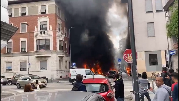 На вулиці П'єр Ломбардо в Мілані виникла масштабна пожежа, яку, ймовірно, спричинила вантажівка з газовими балонами. Про постраждалих не повідомляється. Горить кілька автомобілів, а дим затягує вулиці міста.