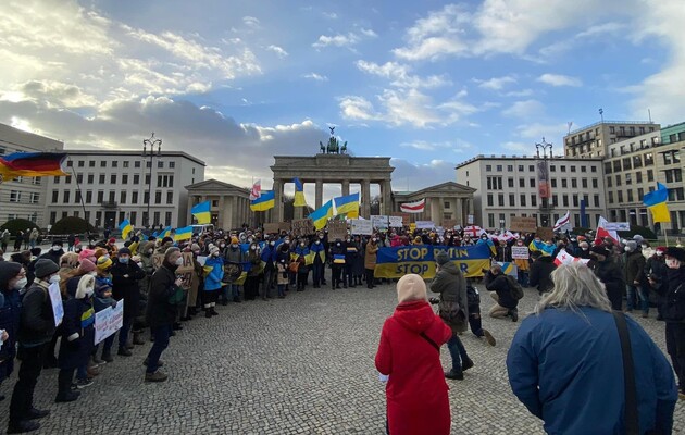 "… 30 січня у Берліні українці та друзі України вийшли на спільну акцію, щоб вкотре продемонструвати світові, що українці виступають проти війни, та закликати федеральний уряд використати свій вплив на Російську Федерацію, щоб зупинити нову російську агресію проти нашої держави", — написали у посольстві.