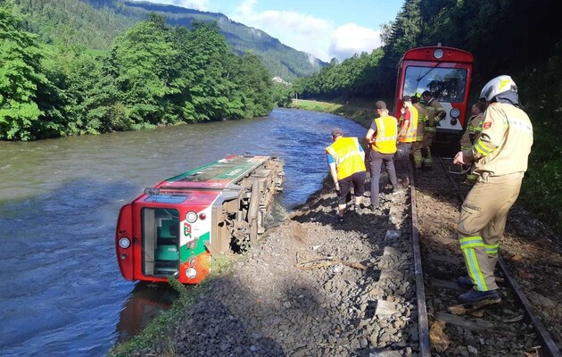 У вагоні, який впав і перекинувся, було 53 школяра. 17 з них отримали поранення - їх госпіталізували.