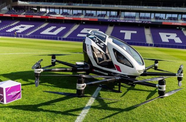 В австрійському Відні, на Generali Arena, відбулися випробування безпілотного авіатаксі EHang 216. Літак важить 750 кг, оснащений 16 пропелерами і не вимагає спеціального посадкового майданчика. Таксі може вмістити двох пасажирів і має запас ходу на 30 хвилин, пише Reuters.
