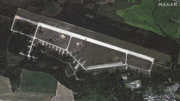 Видання опублікувало знімки аеродрому із різницею вісім тижнів. На них видно, що в північній частині аеродрому будуються піщані насипи. При цьому пісок привозять безпосередньо з кар'єрів на аеродромі.