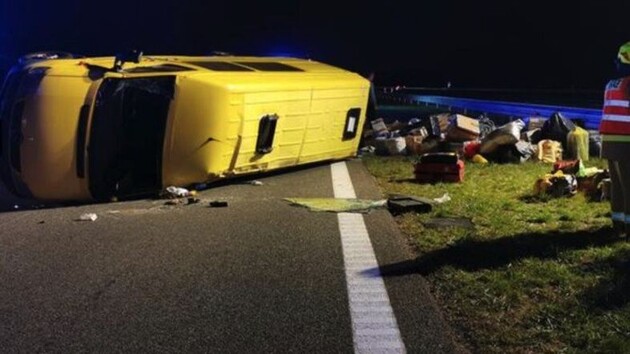 Як розповіли правоохоронці, вантажівка, що їхала попереду буса, різко загальмувала, водій буса не встиг зреагувати і уникнути зіткнення. Після зіткнення бус перекинувся.