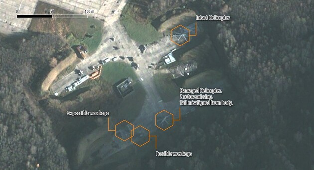 Згодом інша волонтерська спільнота GeoConfirmed опублікувала супутниковий знімок із наслідками вибуху. За інформацією OSINT-аналітика Джона Шнайдера, супутникові знімки датовані ранком 31 жовтня. Там, судячи з фото, знищено три КА-52.