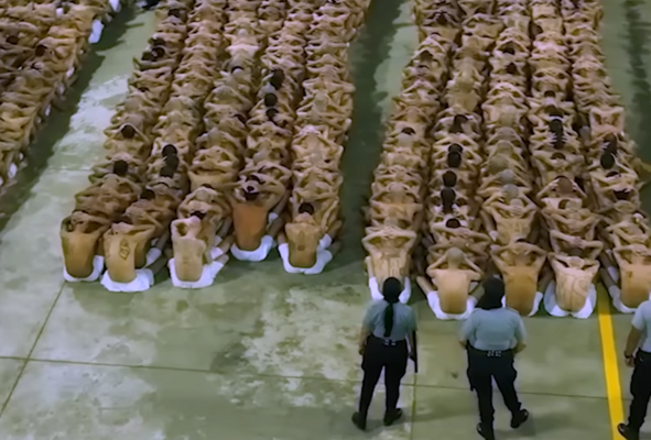 На опублікованих відео видно, як в’язні, роздягнені до білих шортів, з поголеними головами біжать новою в’язницею в камери. Багато з них мають татуювання, що свідчать про їх приналежність до "Банди ведмедів".