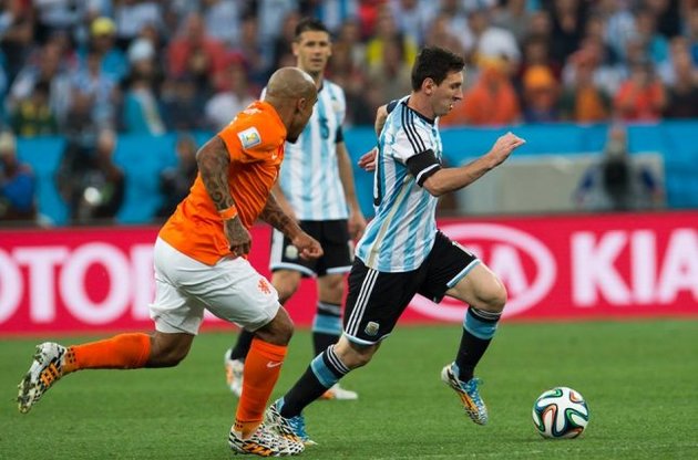 Нагадаємо, в матчі 1/2 фіналу ЧС-2014 Аргентина в серії пенальті вибила путівку у фінал, відправивши голландців боротися з бразильцями за бронзу першості. При цьому підопічні Алехандро Сабельї, так само, як і команда Луї ван Гаала, виглядали дуже блідо - особливо на тлі суперматча Бразилія - Німеччина, в якому було забито 8 голів.