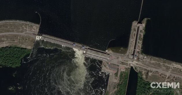 В результаті теракту зруйновано 11 із 28 прольотів верхньої частини греблі.