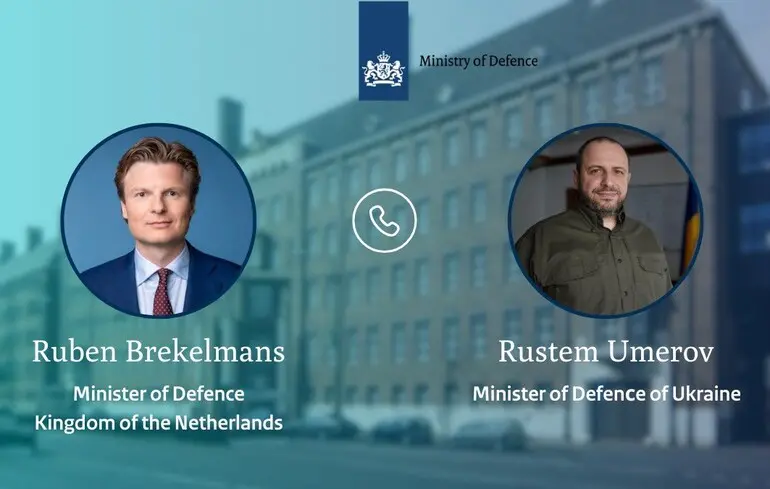 Міністр оборони Нідерландів Рубен Брекельманс повідомив про телефонну розмову з українським колегою Рустемом Умєровим.
