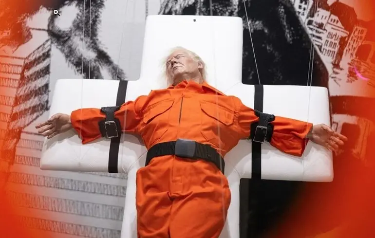 У Базелі (Швейцарія) представили скульптуру, що зображає Дональда Трампа розп'ятим на хресті в помаранчевій тюремній робі. Провокаційний твір британського художника Мейсона Сторма під назвою "Святий або грішник" виставлено в художній галереї Gleis 4. Це друга спроба: перший показ, на Центральному вокзалі, просто побоялися здійснити, боячись суспільного резонансу, повідомляє 6 листопада Euronews.