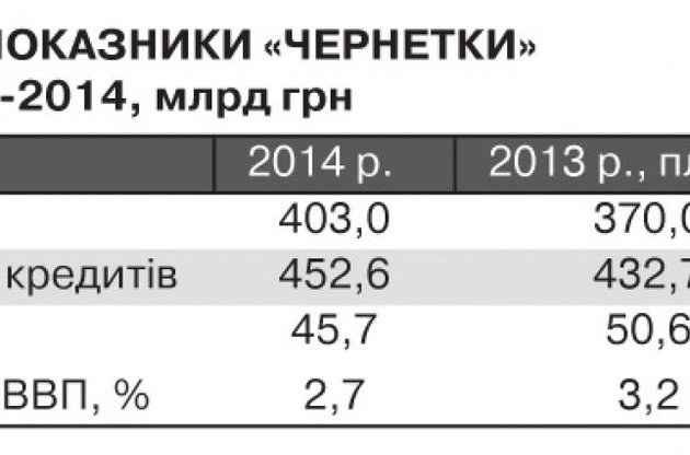Тому ще більш примарними виглядають надії уряду досягнути тих бюджетних параметрів, які з неофіційних джерел з початку жовтня почали випливати в ЗМІ. Відповідно до попередніх версій проекту держбюджету-2014, його дефіцит планувався на рівні 45,7 млрд грн (2,7% ВВП), що на 10% менше від запланованих на 2013 р. 50,6 млрд грн (3,2% ВВП). Забезпечити це скорочення має передусім більш динамічне зростання доходів (+33 млрд грн до і так нереального орієнтиру на цей рік; тобто по факту "плюс" має бути ще більшим), ніж видатків (+20 млрд).
