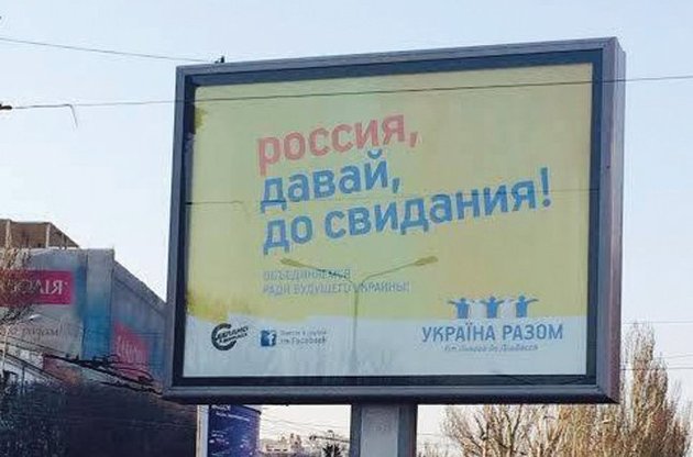 Донеччани, яких багато хто звично сварив за аполітичність, надмірний прагматизм, скаредність та брак патріотизму, несподівано проголосували за Україну своїм гаманцем. Групи жителів знаходять одне одного в соціальних мережах і спільно замовляють зовнішню рекламу з текстами на кшталт "Россия, давай, до свидания" або "Спасибо, мы сами".