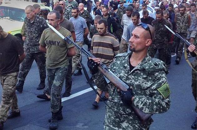Полонених, вишикуваних у шеренги, проводили вулицями Донецька. Натовп знущався з них, кидався яйцями, помідорами, скляними пляшками. Дехто проривався через охорону і завдавав ударів. Одного з полонених ударили кастетом по нирках, після чого він мав серйозні проблеми зі здоров'ям.