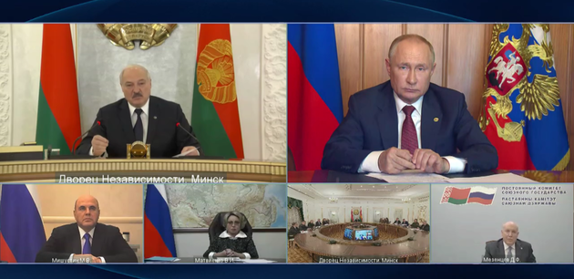 Розпочавши день із поїздки до окупованого Криму, він завершив його спільною з Олександром Лукашенком участю в онлайн-засіданні Вищої державної ради Союзної держави. Там обидва політики затвердили оновлену військову доктрину та концепцію міграційної політики. Але головне — підписали інтеграційний декрет «Про основні напрями реалізації положень Договору про створення Союзної держави на 2021–2023 роки».