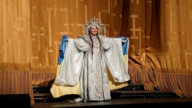 Одна з найпотужніших солісток світової оперної сцени і прима Національної опери України огорнута українським прапором, після тріумфального виконання партії Турандот в однойменній опері під гучні овації на сцені нью-йоркської Метрополітен-опера стала, як зазначив генеральний директор театру Пітер Гельб, «потужним вокальним символом протистояння України».