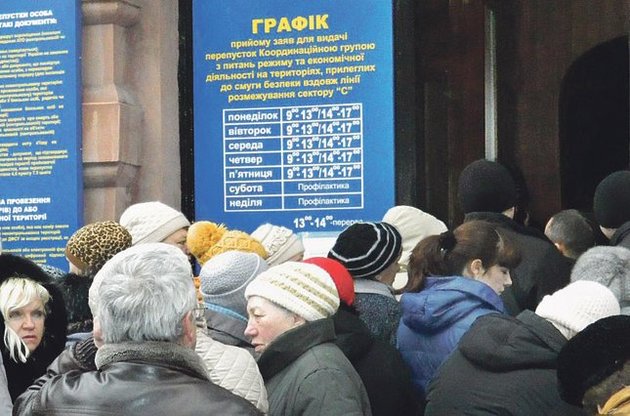 Про необхідність запровадження самої пропускної системи ніхто не говорить навіть у цій черзі. Тут усі звиклися з тим, що від них нічого не залежить, - війна. Одні вже свідомо живуть у якихось нових республіках, не забуваючи вимагати виплат від України. Інші переживають величезну життєву трагедію, і в ній - біль за Україну та кривда, що країна, від якої вони не відмовилися в найтяжчих умовах, фактично зрікається їх. Майже всі пережили обстріли, загибель рідних та знайомих, неодноразово тікали в чужі міста.