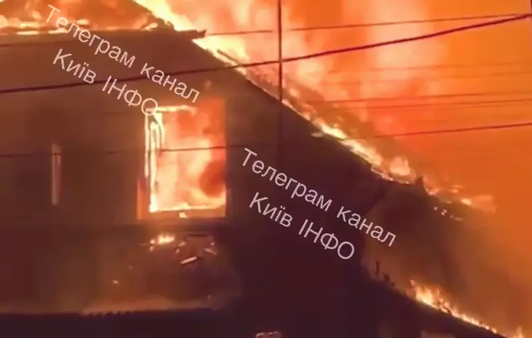 У ніч проти 17 січня внаслідок падіння уламків "шахеда" під Києвом почалася пожежа - горить будинок. Про це повідомив телеграм-канал "Київ ІНФО | Новини Україна".