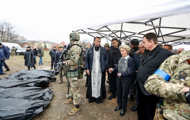 "Те, що трапилося в Бучі рік тому, не було ізольованим епізодом. Ці холоднокровні страти були частиною більшого плану. Плану Кремля знищити українців. Їх національну ідентичність. Сенс їхнього життя. Злочинці, винні у воєнних злочинах, будуть притягнуті до відповідальності", — зазначила фон дер Ляєн.