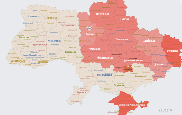 Наразі сигнал повітряної тривоги лунає у низці областей України, а також у столиці та області.