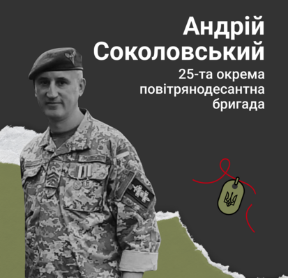 48-річний сержант Андрій Соколовський загинув 1 квітня 2022 року у бою з окупантами під Авдіївкою на Донеччині. Захисник отримав наскрізне поранення легень та втратив багато крові. Ще шість днів тіло бійця лежало на полі бою, аж поки його не змогли забрати у морг Дніпра.