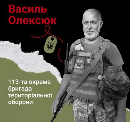 Солдат Василь Олексюк загинув 21 січня 2023 року в бою з окупантами в районі селища Благодатне на Донеччині. Йому було 50 років.