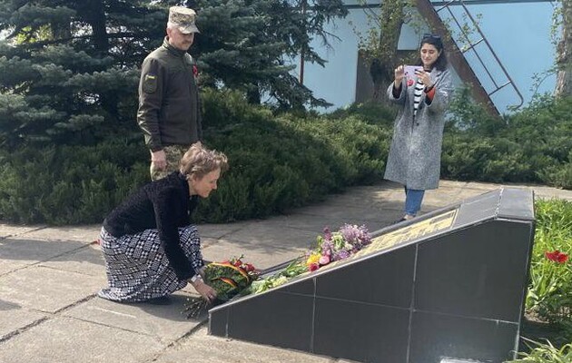 Посол Німеччини в Україні Анка Фельдгузен у День пам'яті та примирення відвідала село Мощун на Київщині, біля якого точилися бої минулого року. Про це вона написала у своєму Twitter.