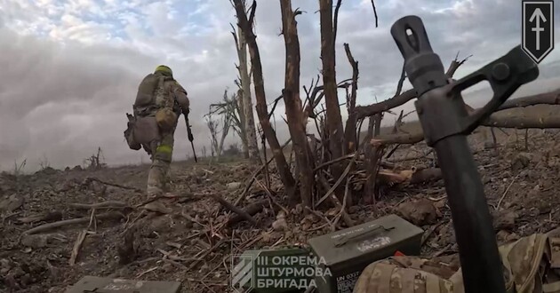 «Прикриваємо своїх та просуваємося... По ворожій групі відпрацьовує мінометний розрахунок. Кулеметник продовжує крити у бік противника, аби «двійками» штурмовики просувалися та зачищали місцевість, яка кишить окупантами. Це осінні бої на сході та злагоджена робота бійців 3-ї роти 1-го штурмового бату Третьої штурмової бригади», – зазначили у 3-тій ОШБр.