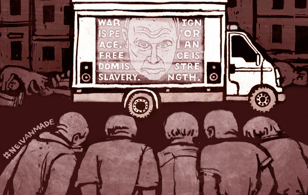 У своєму перевернутому орвеллівському світі «хазяїн землі російської» маніпулював цифрами і фактами, представляючи Росію жертвою, а Україну та Захід — віроломними агресорами: «Це вони розв'язали війну, а ми використали силу й використовуємо, щоб її зупинити».