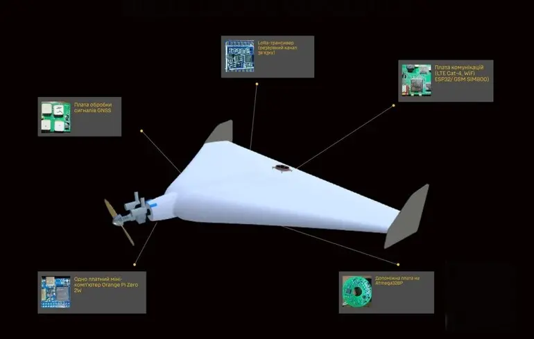 Як зазначають у розвідці, дрон оснащений камерою та двома LTE-модемами, що забезпечують передачу відео в режимі онлайн або у записі через мобільні базові станції, а також прийом команд для корекції маршруту. В ударній версії оператор може використовувати камеру з регульованим кутом огляду для наведення на ціль за принципом FPV.