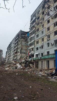 Авіабомби влучили у нежитлові будівлі та багатоповерховий будинок. Окупанти знищили цілий під’їзд у багатоповерхівці.