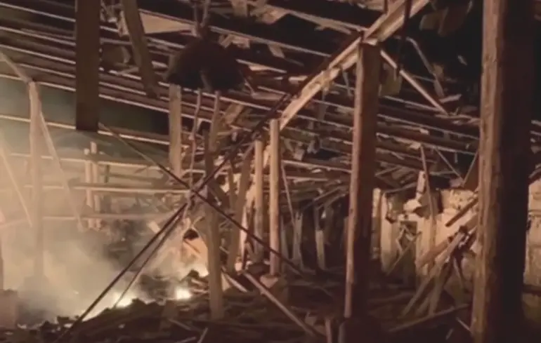 На місці удару спалахнув вогонь. Кобзар каже, що один із прильотів припав на промисловий об′єкт і публікує відео пожежі, яка там виникла.